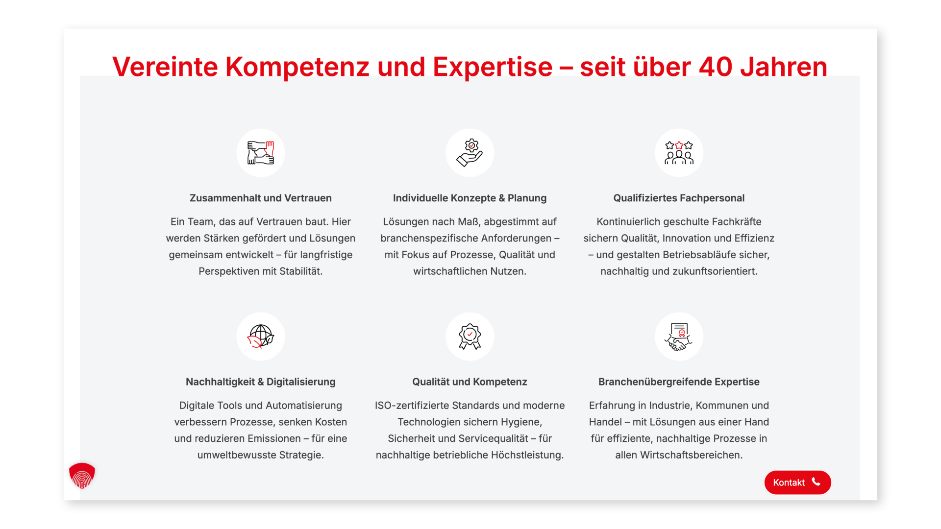 Die Benutzererfahrung zielt klar auf Übersichtlichkeit, schnelle Zugänglichkeit und zielgerichtete Ansprache: On-Page-Buttons wie „Jetzt anfragen“ und prominente Kontaktinfos erleichtern Interaktion und Conversion. Die Unterseiten sind inhaltlich fokussiert, mit klaren Themenschwerpunkten und Kennzahlen, die Vertrauen schaffen und den professionellen Auftritt stärken.